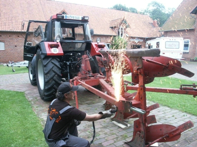• Aus 2 Pflügen mach 1 großen, Den letzten Pflugschar trennen wir erst mal mit dem Plasmaschneider ab